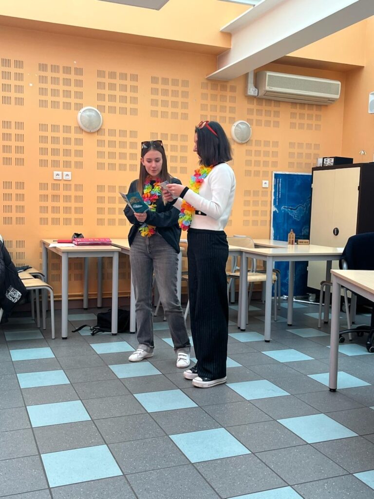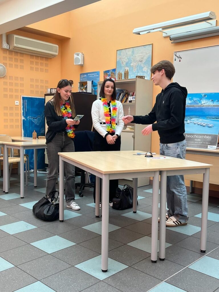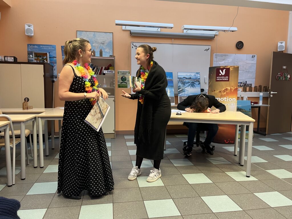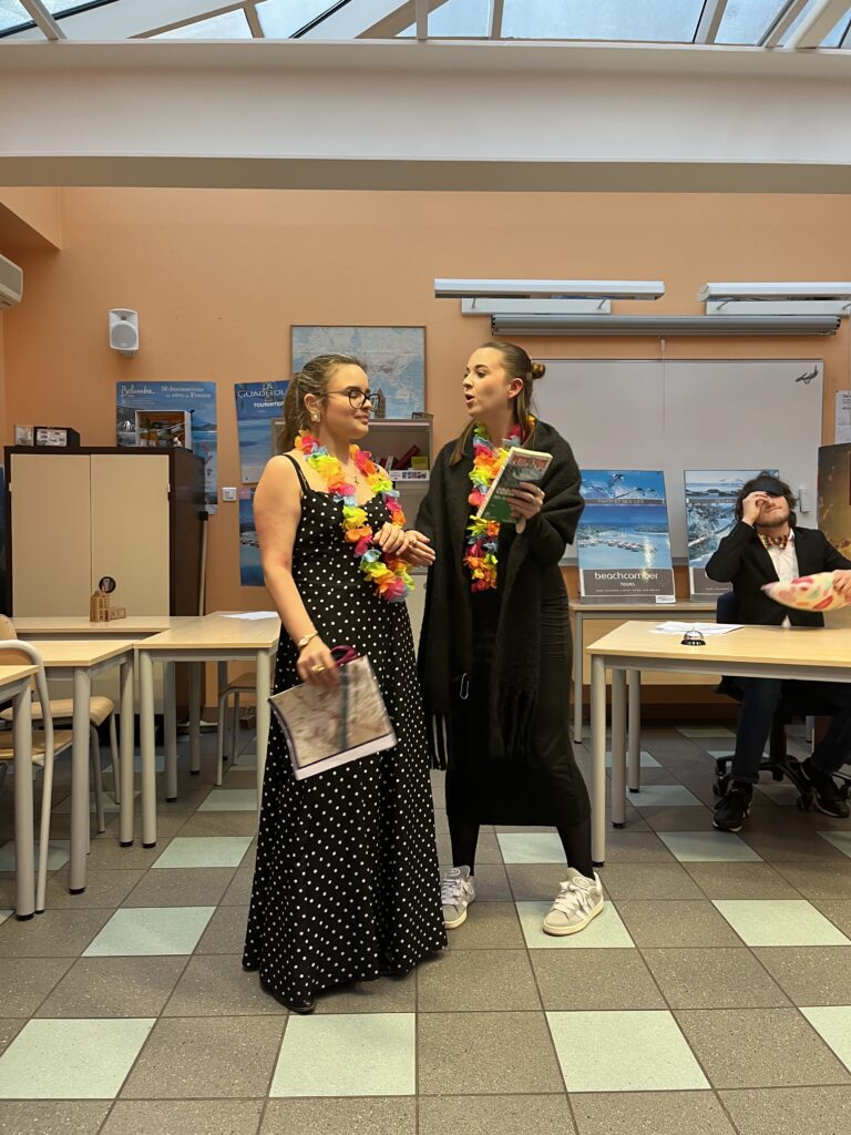 Deux pièces au choix en anglais, l’une sur une agence de voyage et l’autre sur la réception d’un hôtel. Les étudiants ont adapté puis se sont appropriés ces pièces pour le plus grand plaisir de leur auditoire.